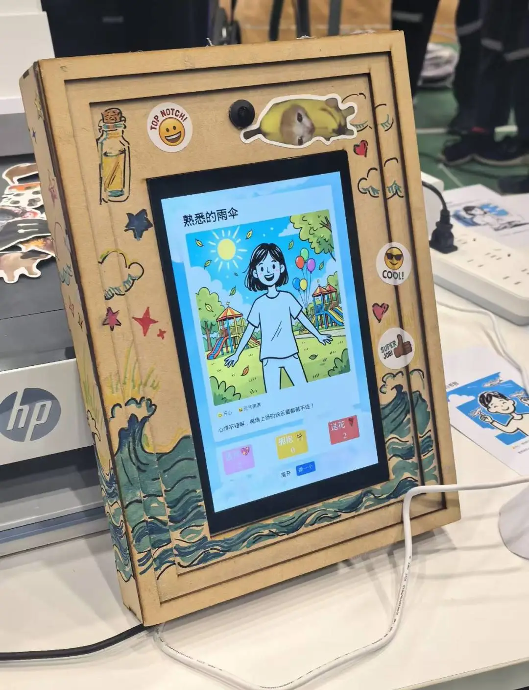 周五下午,羽毛球馆成为了同学们作品的展厅。AI课程训练的游戏端自动避障机器人、卡魅课程设计的激光切割作品、STEAM课程搭建的创意模型,一件件作品凝聚着同学们的奇思妙想。其中,高中学生Eva开发的AI游戏机器人凭借真人玩家已无法战胜的精准操作,成为吸引无数人驻足的焦点。